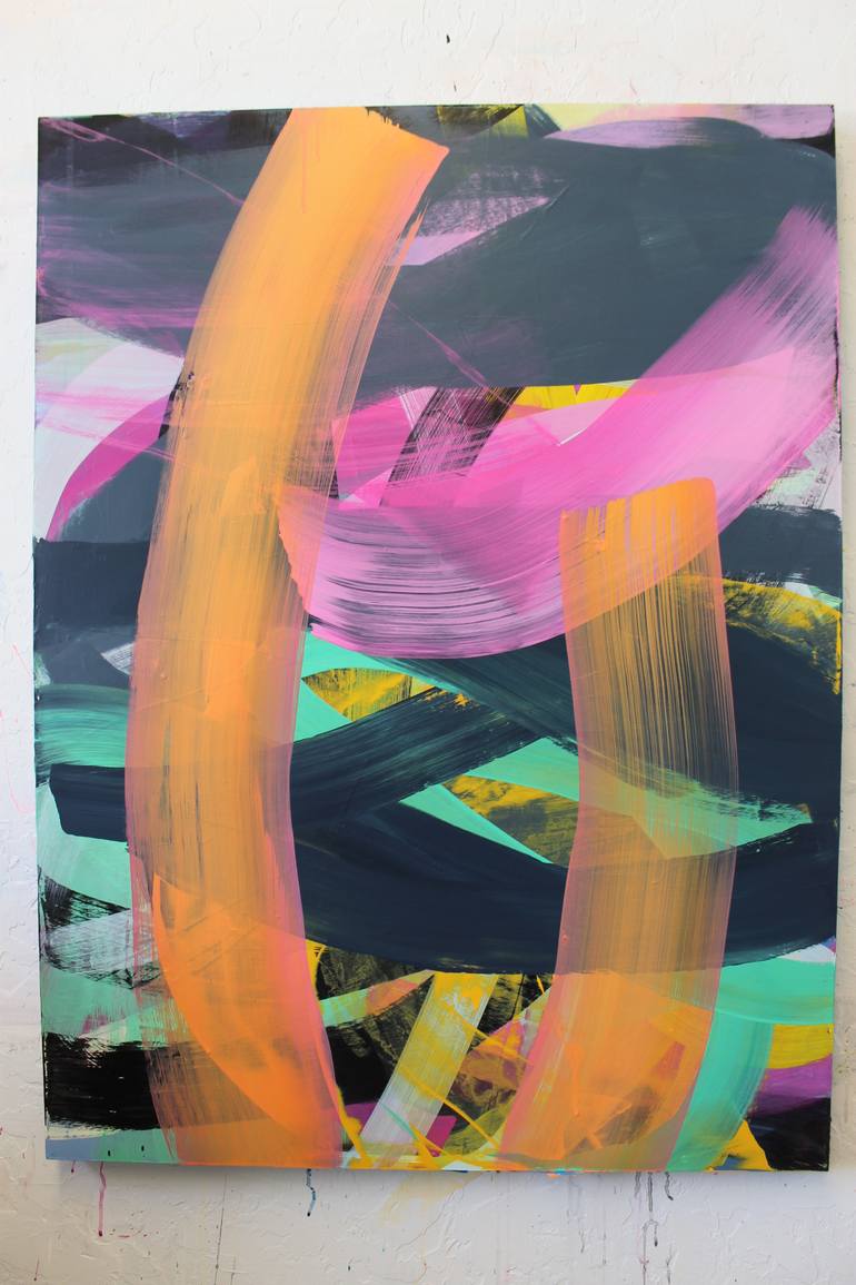 My work investigates notions of depth and space as it pertains to the painted surface. There is a dependency on opposing positions finding the right balance, a struggle between order and chaos. Hard edges and flat space is met with atmospheric illusion. By challenging the visual structure tension is created. Uncertainty is embraced to transcend to openness.