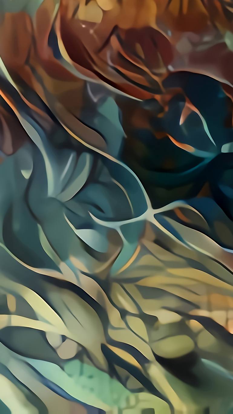 This is a small piece of a much larger work that is a portrait of a fellow artist. The piece is so detailed, that small parts of it can actually be their own art! I have entitled this "An Earthy Abstract in Landscape". Painted by an AI trained with my own brushes, this piece represents the movement ...