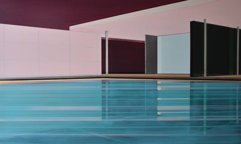 Cécile van Hanja, born in Corsica in 1964 and a graduate of the Gerrit Rietveld Academie in Amsterdam in 1993, is an artist based in Haarlem, Netherlands. Her artistic journey has been deeply influenced by her formative years spent in the South of France, later finding inspiration in the structured landscapes of the Netherlands. Van Hanja’s works epitomize the principles of ‘De Stijl’ and Modernism, notably influenced by Piet Mondrian’s straight lines and the movement’s pursuit of harmony and unity. Her fascination with the ideals of hope and prosperity stemming from these 20th-century movements is evident in her paintings, which often depict modern architectural compositions characterized by rhythmic patterns of verticals and horizontals. Emphasizing intangible aspects by creating open spaces, her paintings feature transparent walls and floors, leading to an interplay of reflections and vanishing points. The deliberate use of thin layers of acrylic and oil paint adds depth and luminosity to her works, allowing underlying colors to shine through and preventing the architectural compositions from becoming static. Cécile van Hanja’s art is renowned for its multi-colored labyrinth of spaces, creating an illusion of depth and complexity within a structured framework of lines and reflections. Her compositions invite viewers to explore the blend between rational and intuitive thinking, offering a unique perspective on modern architectural landscapes through her layered and transparent artistic approach. Her works are displayed in various private collections globally and represented by prominent galleries such as the Fremin Gallery in New York and Saatchi Art’s Samsung Architecture collection. Additionally, Cécile also accepts commissions. If you reside in a modern home and wish to commission a painting, you can submit a request through the Saatchi team, who will facilitate communication with the artist.