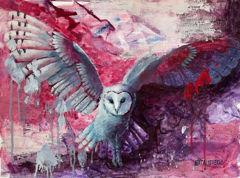 This listing is for my original painting. ''Into the sky''(2023) To create a series of my new works, I chose owls. I love owls. Although, I saw an owl in nature only once. One early morning I was driving along the road, and the owlet suddenly appeared in front of my car. He was frightened and blinde...