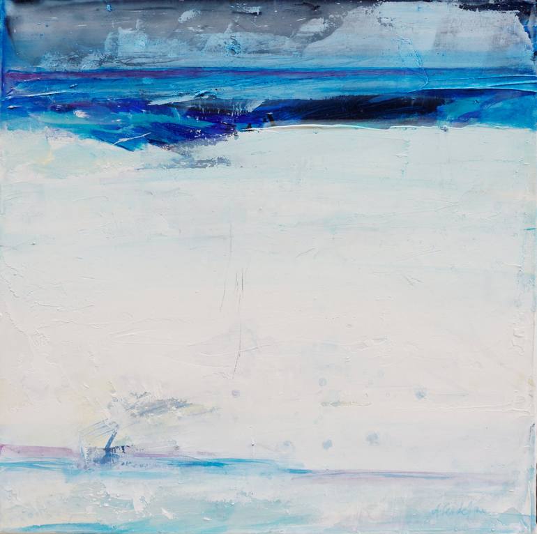 "Inverno_2" is a striking, medium-sized abstract painting that captures the essence of winter. The artist uses acrylic on canvas to create a modern landscape, evoking the feeling of cold and the stark beauty of a winter scene. The predominant use of white in the artwork enhances the feeling of a cri...