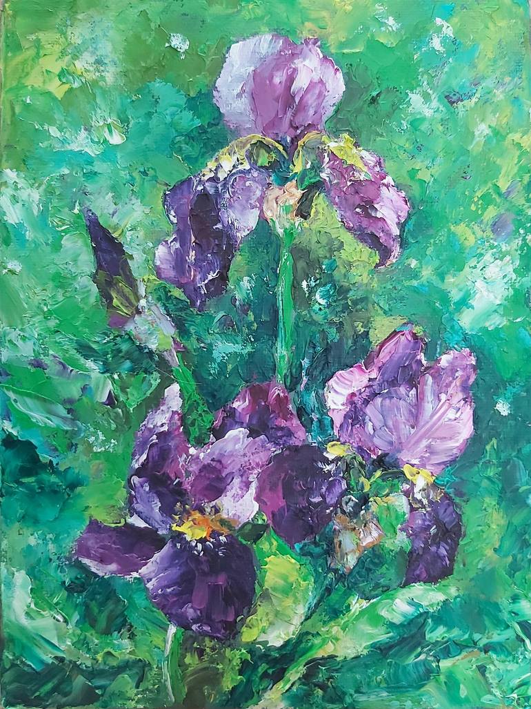 Iris Flowers.Flowers painting on canvas.Original art handmade.Oil Artwork flowers .Impasto art.Wall Decor.Small Painting.Abstract Artwork.Field of flowers.