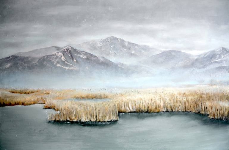 I've always been captivated by sea and inspired by nature. Original painting is made using high-quality oil paints on canvas. Artist depicts winter landscape using palette knife technique creating textured mountains' peaks. Painting is shipped stretched and ready to hang. Artist: Tatiana Hutsul