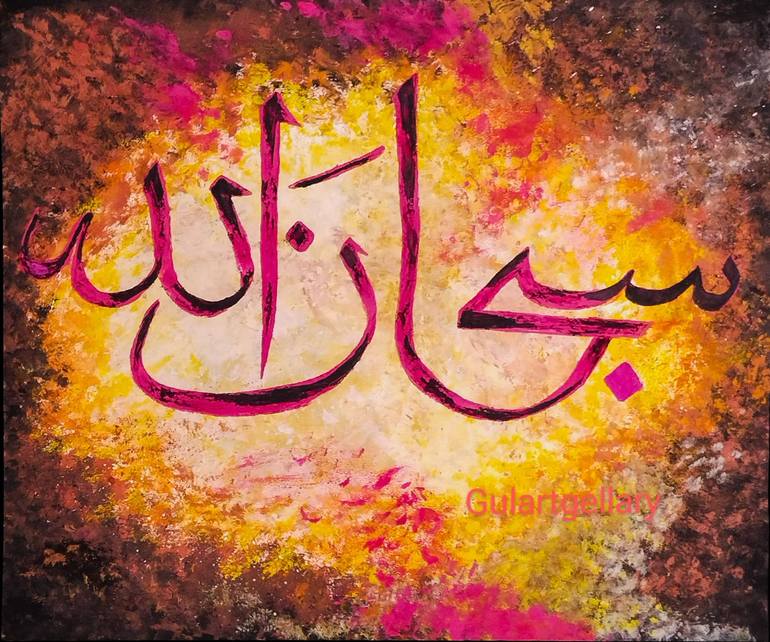 This Islamic calligraphy written (subhanAllah) is made with omega poster colors using different brushes.