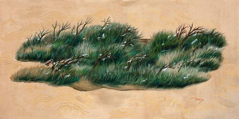 "Life is like a rough wave, suffering and happiness are repeated. I'm drawing a story about an individual's psychology and an artist's attitude in it." Drawing waves is recording my determination to balance with the center of life. Waves symbolize the huge hegemony of life that sweeps and attracts us, and replace people living in the present era, including myself, with certain objects, to construct the relationship between individuals and society in the picture. I also pay attention to the collective ideology that individuals expect and the confusion and instability of that ideology. Independent human beings are essentially concerned with the ideology, pressure, gaze, and at the same time, the two-sided community comfort that they have no choice but to rely on. It also reflects my desire to find my center and live freely among the waves in the ever-changing standards of right and wrong. I wanted to convey this story smoothly, so the way of expression also needed softer materials. The form of waves was taken from the traditional styles of East Asia, including Korea in the past, and gradually transformed into my own form of expression. Therefore, Seokchae, a pigment that matches the shape of the wave and has its own color, was selected as the main material. The background material was able to create a strong and cozy light by applying agglutination water on linen fabric and mixing pigments and dyes such as stone and bongchae. Philosophers who wanted to find the truth of the world relied on themselves, the last remaining friend and enemy, doubting all the obvious things. I can't always expect to live like a philosopher in a chaotic modern society, but I want to live across the waves at my own will rather than living rich between the waves. I hope such a story can be conveyed to the audience calmly through my paintings. Instagram :