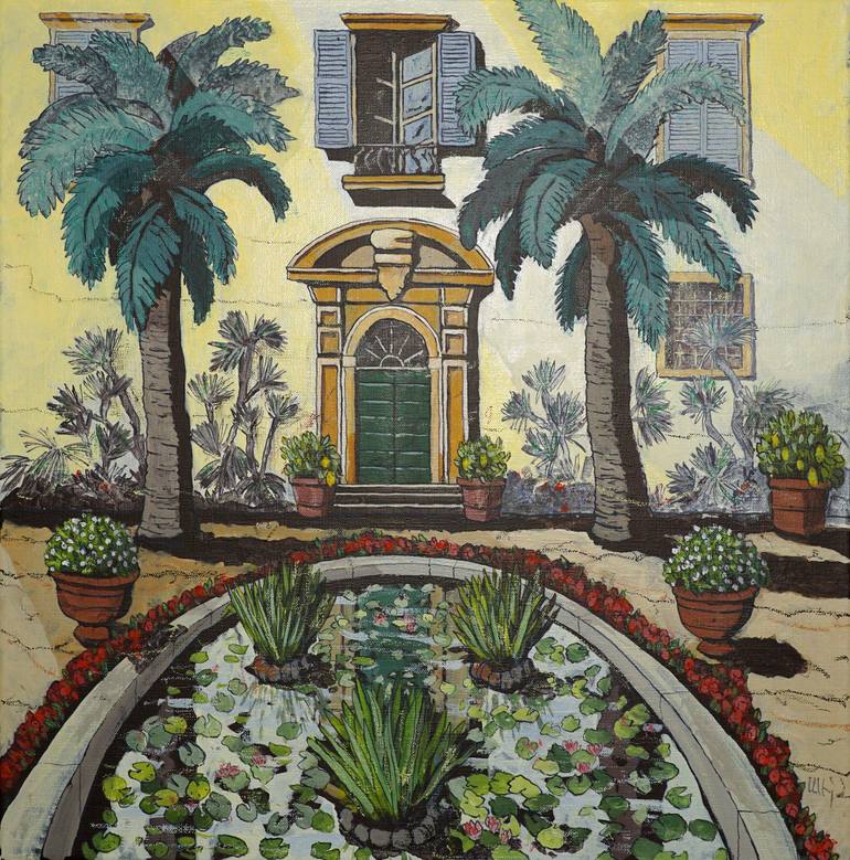 The title of this painting means the Isola Madre, part of the Borromeo Islands in the Lake Maggiore. The Painting shows one of the many details worth to be painted of these garden-villa-islands.