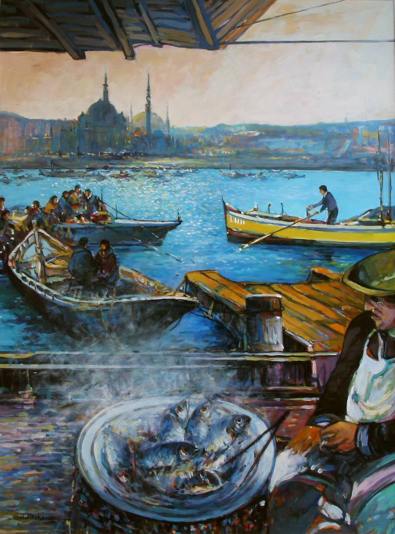 Istanbul in Turkey, view towards the New Mosque (16th century) through the Golden Horn Bay of the Bosporus