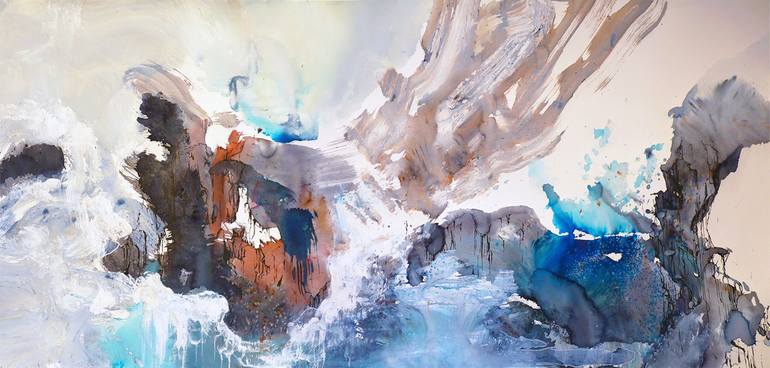 After Zhang Daqian. Abstracted landscape. Acrylic and watercolour on 300 gsm fabriano paper.