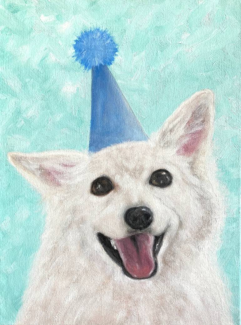 This doggo is so happy that you came to his birthday party! Original oil painting on gallery wrapped canvas. Comes with wire installed in the back and ready to hang.