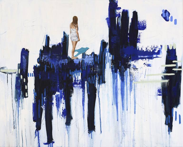 I love to place the human figure in vast, colorful semi-abstract landscapes. In some works my figures are depicted as an outline which has been filled in with various colors and shapes - as if the human form is a 'container' - of emotions, thoughts, memories. In other works, there is a more realisti...