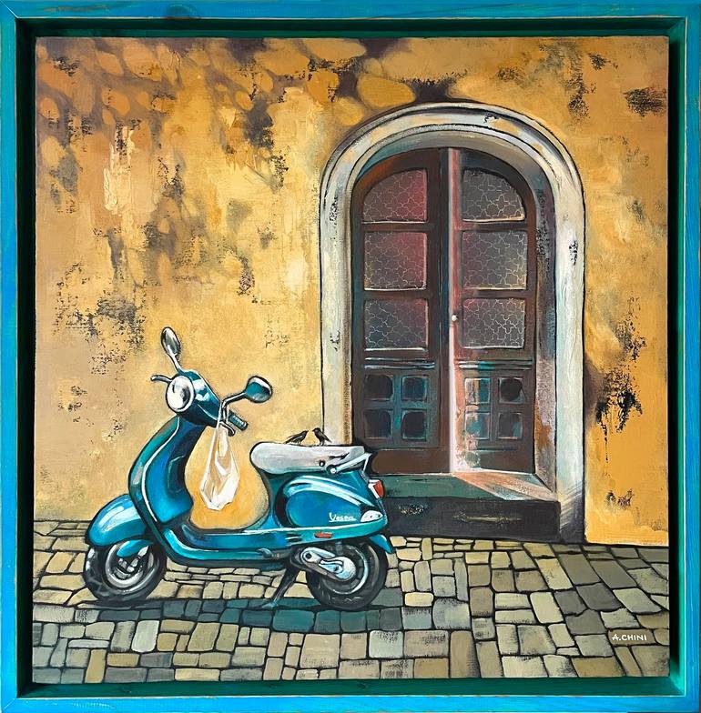 Title: Italia | Vespa 60x60x4 cm ORIGINAL OIL PAINTING ON CANVAS HIGH QUALITY ARTIST GRADE OIL COLORS AND MEDIUMS ARE USED. Without frame Signed on the back The edges are painted - This Artwork is hand signed and dated on the back. - My paintings are securely packaged, insured and shipped through...