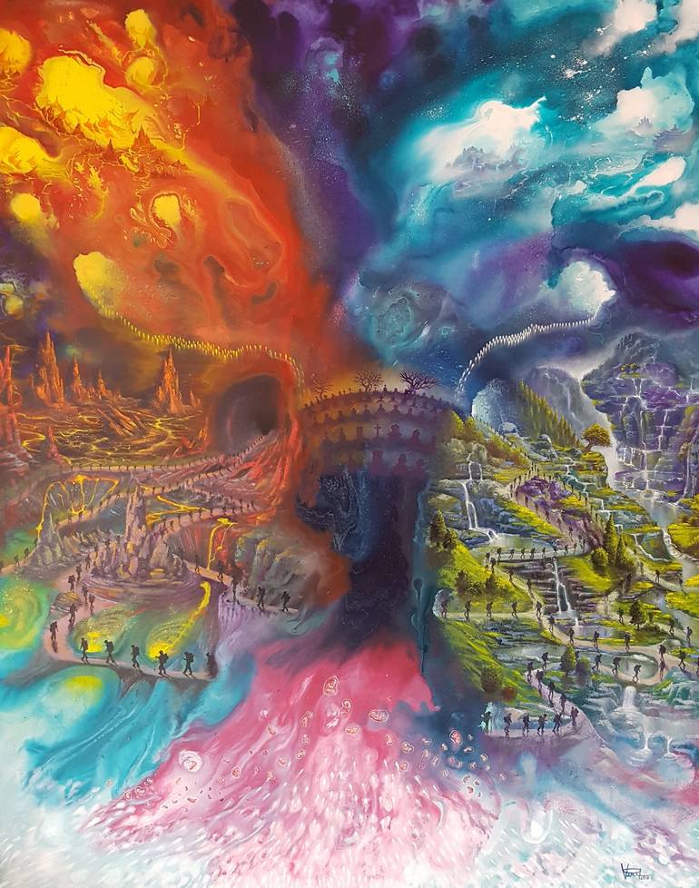 JOURNEY OF THE HUMAN SPIRITS IN 5 LIFE. Human consciousness as a soul is an eternal being. Wandering from the SPIRITS realm into the FETUS, then born into the WORLD, wandering towards DEATH, then anchored in the HEREAFTER.