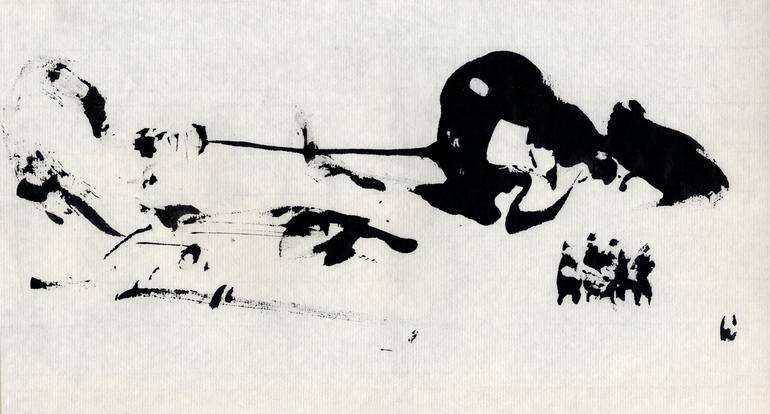 zen ink painting on rice paper 6 x 12"