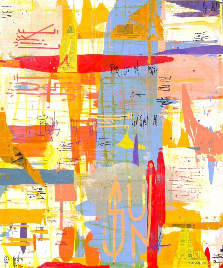 I use high quality acrylic, oil, and/or in-studio mixed paints to create abstract paintings (some more abstract than others). When talking technique there are several, each crafted by impulse and practice. Each piece is unique, created with much thought, sweat-blood, and love. Please lean in and look deeper. Every stroke, scrape, and letter is there for you, to uplift you and keep your mind intrigued. +André Rizé