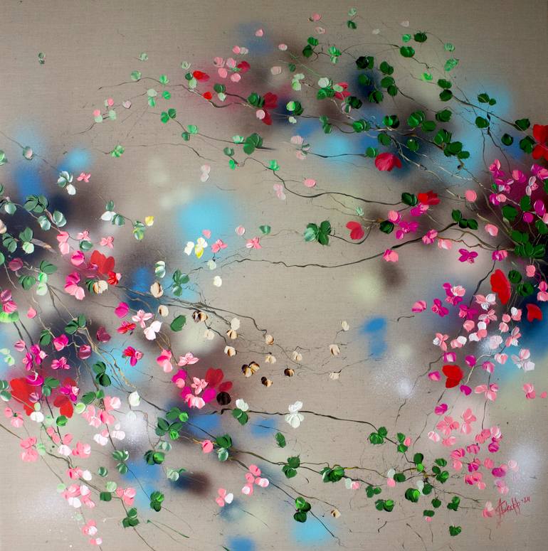 Statement: “I feel my mission is to create art works from inner silence.” - Anastassia Skopp Born in Russia, Anastassia Skopp was raised by her Mom in the city of Saransk where she studied art for 7 years (1985-1992) at the Mordovian Art College named after P.F. Ryabov for children and young people. There she learned about drawing, composition, art of painting and sculpturing from well-known artists and painters (including P.F. Ryabov). Welcome to Anastassia's world of floral paintings, where art and spirituality converge to create a unique and transformative experience. As an artist, she has devoted years to studying spiritual books by Eckhart Tolle, and her art is a reflection of this profound exploration. According to Tolle, flowers serve as messengers from another world, bridging the divide between the physical and the formless. They emit a subtle fragrance that not only pleases the senses but also carries an aroma from the spiritual realm. Anastassia's paintings extend an invitation to immerse oneself in this realm of meditative floral enchantment, where impasto colors and textures intertwine to foster a sense of tranquility and serenity. Her technique draws inspiration from abstract expressionism and modern art, employing a distinctive combination of mixed media that includes undiluted acrylic paint, ink, gel medium, and structure paste. Through these mediums, she crafts three-dimensional flowers and surfaces. She particularly delights in creating impasto abstract pieces, utilizing spatulas, tubes, and fruit knives to achieve a tactile and textured effect. Anastassia's mission is to create art that emanates from inner silence, transmitting this state of being to the viewer. Each painting becomes an oasis of focus and tranquility amidst the tumultuousness of everyday life, offering a moment of stillness and serving as a reminder of the beauty and interconnectedness of all things. Her works have been collected by individuals and art enthusiasts worldwide, spanning from Japan to the USA and Canada.
