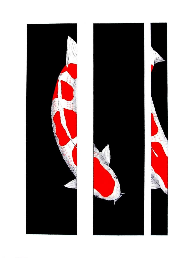 If you want some thing different this is it a painting of a koi Kohaku in a division of its own a koi with a split personality. Gordon Lavender is a British painter, from Liverpool, in whose work we can recognise a strong inspiration in Asian Koi painting and Koi art altogether. This inspiration of...