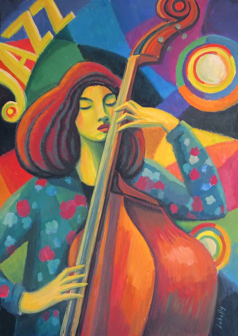The work is inspired by the composer and double bass player Esperanza Spalding. The colors used, close to Fauvism, create this atmosphere of musicality. The structured planes and their background colors give the work a continuous movement, similar to the simultaneous contrast of which Robert Delauna...