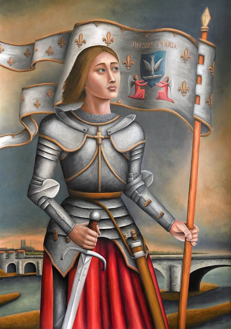 The holy maid of Domrémy in front of the Pont des Tourelles d'Orléans (France), besieged by the English in April 1429. Original painting on 290g paper not available at the moment.