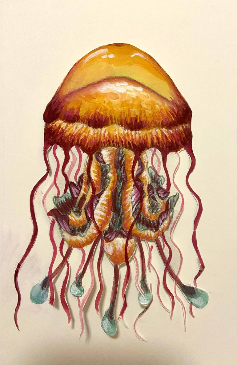 This piece represents the beauty of jellyfish to me- so unassuming and transparent, yet dangerous and cunning, without even having a central nervous system to get commands from. One of the most impressive feats of evolution, and some of the most majestic creatures in the ocean. My goal was to exag...