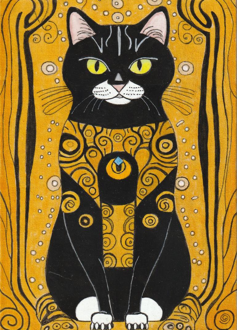 This small format art (sfa) is a surreal depiction of a cat holding a kitten.