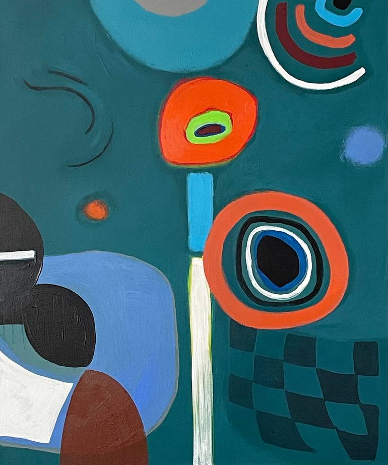 Having scored a book on Joan Miro at the thrift store I created a trilogy of paintings that work well together. This is the third in the series focusing on creating a composition of bold shapes and colors reminiscent of the famous artist's aesthetic. Ready to hang, sides painted white. Please see m...