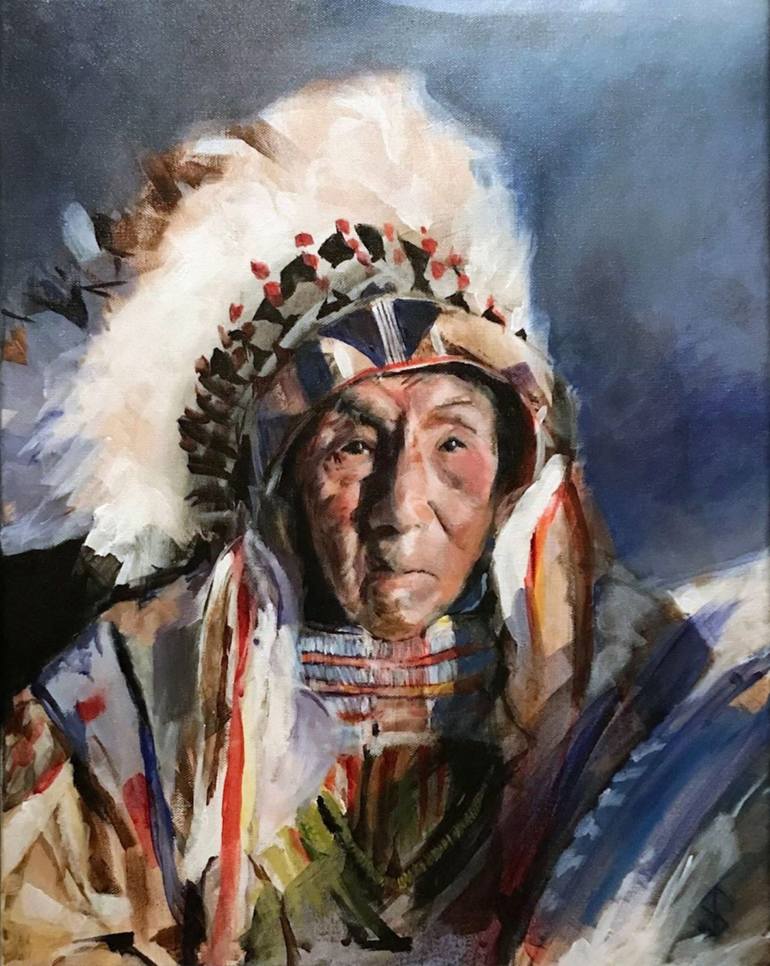 I am moved by the beauty and intricacy of the Native American cultures. This piece confronts and examines the grace and age and inevitable vanishment of true nobility.