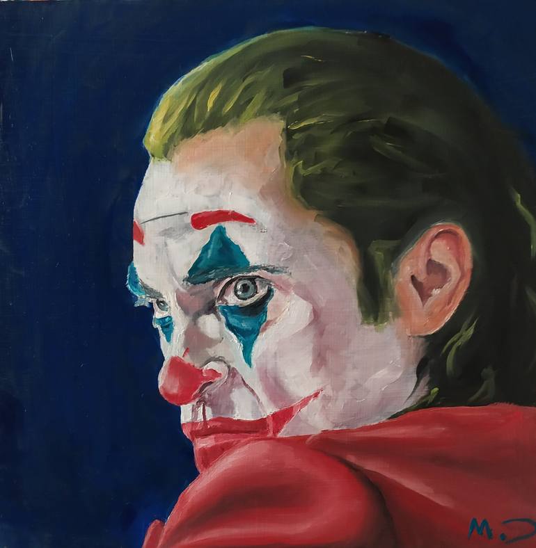 The painting is not for sale, it portrays an icon of our times, Joker in the superb interpretation of Joaquin Phoenix. The work is done in oil on MDF panel, alla prima.