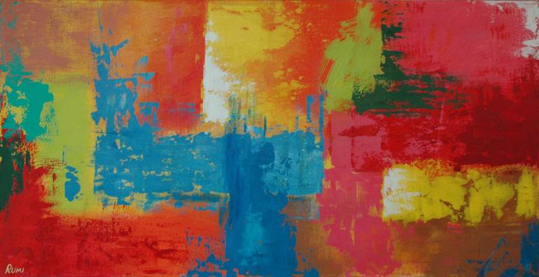 In creating this piece, I embraced the vibrant power of colors to communicate deep emotions and abstract concepts. Each stroke of my brush in this acrylic painting was thoughtfully applied to evoke a sense of dynamism and passion. The bold patches of blues, reds, yellows, and oranges symbolize the e...