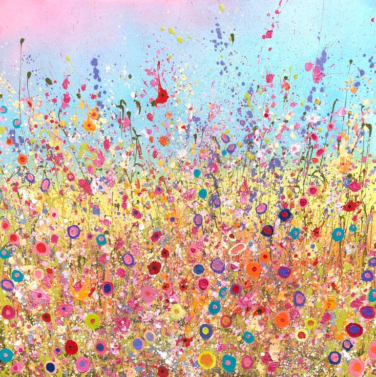 I trained in Sussex, England and have been working as a full-time professional painter since 2002. My contemporary paintings are held in private and public collections worldwide. The paintings are created using a multitude of layers and are deeply connected to nature. I work exclusively with oil paints and I believe my work communicates all that is good in the world. My rainbow drenched paintings sing of wild tumbling hedgerows, tangled meadowlands, open moorlands and magical forests. They whisper of love. My intention is to transport the viewer to an effervescent place of happiness that is literally saturated in joy. A place where paint smiles. The materials I use are extremely important. A mixture of oils, inks, glosses, glazes, fine glitter and gold leaf are applied in a multitude of layers. Washes are built up to form a work that is infused with colour. Paintbrushes, sponges, rags, palette knives and fingers are all used to create the finished piece. The result is a kaleidoscopic jewel like composition of rich pigments that prismatically opens up to reveal the radiance and beauty of nature. I always works outside, so lacy ice and howling gales have as much influence on the final painting as scorching sunshine and gentle breezes. The weather in a very direct way dictates how and where the paint falls. The creation of the piece is a very physical demanding process that requires my all. The initial marks evolve from an energetic dance around the canvas and the process is full of raw emotion and passion. In the early stages of an image I throw, rub, dribble and pour rich stains onto linen responding to internal and external landscapes as they unfold themselves. However, in the final piece there is also a quiet calm and peacefulness present in each image. A place for the soul to rest. A place for dreams to unfold. Spontaneous and instinctively my paintings demand risk, courage and a weaving of magic out of what emerges. Surrendering to the canvas I touch the place where mystery lies. I was brought up on a farm and spent much of her childhood in Ireland, my mother’s homeland. Inspired by the world and all it contained, I travelled widely in my twenties with a thirst for exploration and discovery. During this period I spent time living and working in Australia, Africa and Europe. One of my most formative journeys was spent with a horse-drawn community in England, discovering ancient, sacred and forgotten parts of our land.