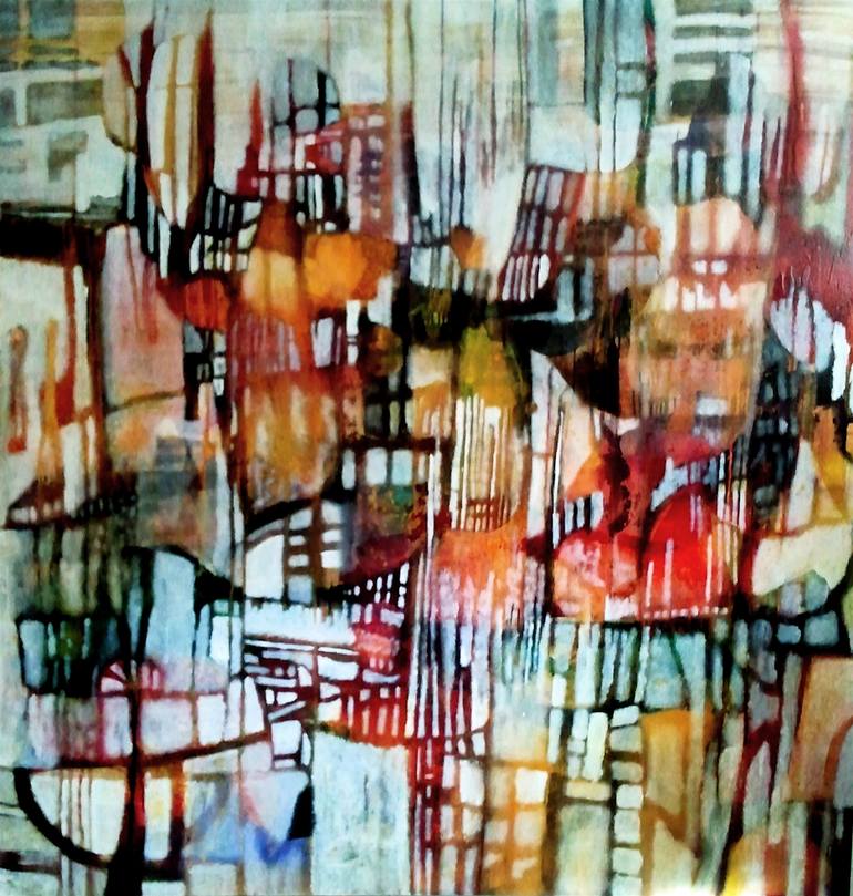 Caia Matheson is a Contemporary Oil Painter and currently lives and works in Eastbourne, East Sussex. Her work features layered colourful abstracts and figures that continually reference themes of antimony or contradiction such as light/dark, stillness/movement, the visible and invisible. Matheson was born in Johannesburg, South Africa where she would delight in nature and the wild animals of Kruger National Park. Being raised by a Xhosa nanny and gardener from the Zulu tribe both living on the property, her youth was filled with tribal stories and cultural rituals. At age 7 she emigrated with her family to Tokyo, Japan to attend an International School. The contrast of cultures as well as the rural versus city locations began her fascination with contradictions and paradoxes. Spending her formative years in Tokyo, she would still visit South Africa on a yearly basis. On one such visit to Joubert Park in Johannesburg, her mother shared the story of racial segregation illustrated by the black and white painted benches in the park - an absurdity that would begin the emblematic nature of colour in the young artist's mind. On multiple journeys, Matheson visited various Asian countries, discovering unfamiliar and exotic places in Thailand, Singapore, the Seychelles, and around Japan - memories that she began to recall in shapes and lines for her artworks. Returning to Johannesburg at the height of Apartheid, aged 14 she attended school taking part in the 1985 Free Nelson Mandela Rally at Witts University before emigrating to London at 16, where she attended Lansdowne college completing A levels in Arts and Languages. Losing her mother at an early age due to illness, Matheson would be prompted to work for the Japan Travel Bureau, later transferring to All Nippon Airways and Fuji Bank, then as a Production Manager for Designer Originals and freelancing as Event Manager for Arts and Music Festivals and Events. Leaving work after a couple of years, she would travel around Holland and Spain and live in an isolated hippie community, before returning to London to focus on her journey towards becoming an artist. After having worked in several creative industries including Fashion, Music, Set Design and Event Management, Matheson received a Distinction in 3D Art & Design at Barnet College in 1994.