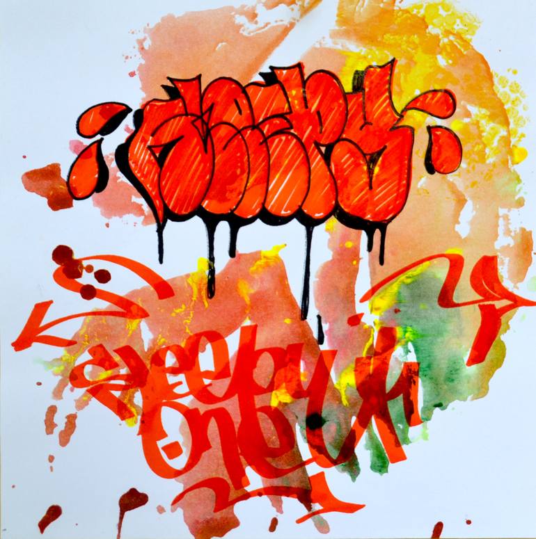 + Mixing up between graffiti and abstraction with the flat print tehnic. + My Influence is Bates, Cantwo, Askew, Phatone, and etc. + This is original artwork and limited . + Medium with acrylic and marker on paper.