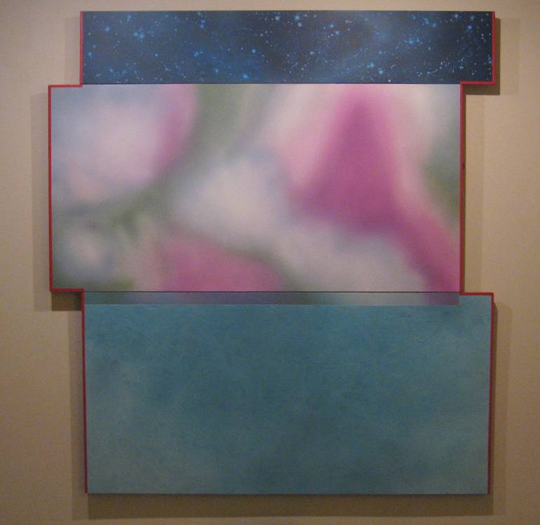 Shaped wood piece in 3 sections. Optimistic , and bright.