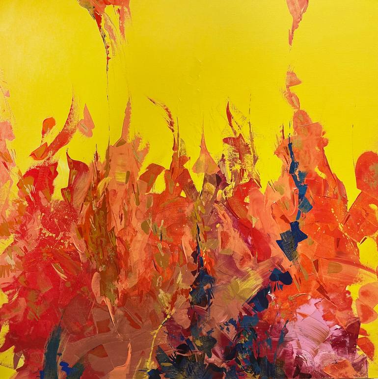 July – A burst of sunlight, energy, movement, and untamed joy, unfolding at the height of summer. The air shimmers — golden and charged — as if the whole world is pulsing with light. This painting is about the sensation of the sun on your skin, the warmth filling your body, the vibration and breath,...