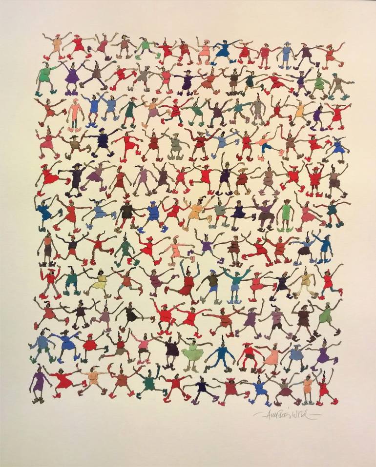 Inspired the work: People, moving, exercise and dance, having fun, no matter what age you have. I hope its viewers smile and feel a kind of happiness. Paper and acrylic is a great medium to do this work.