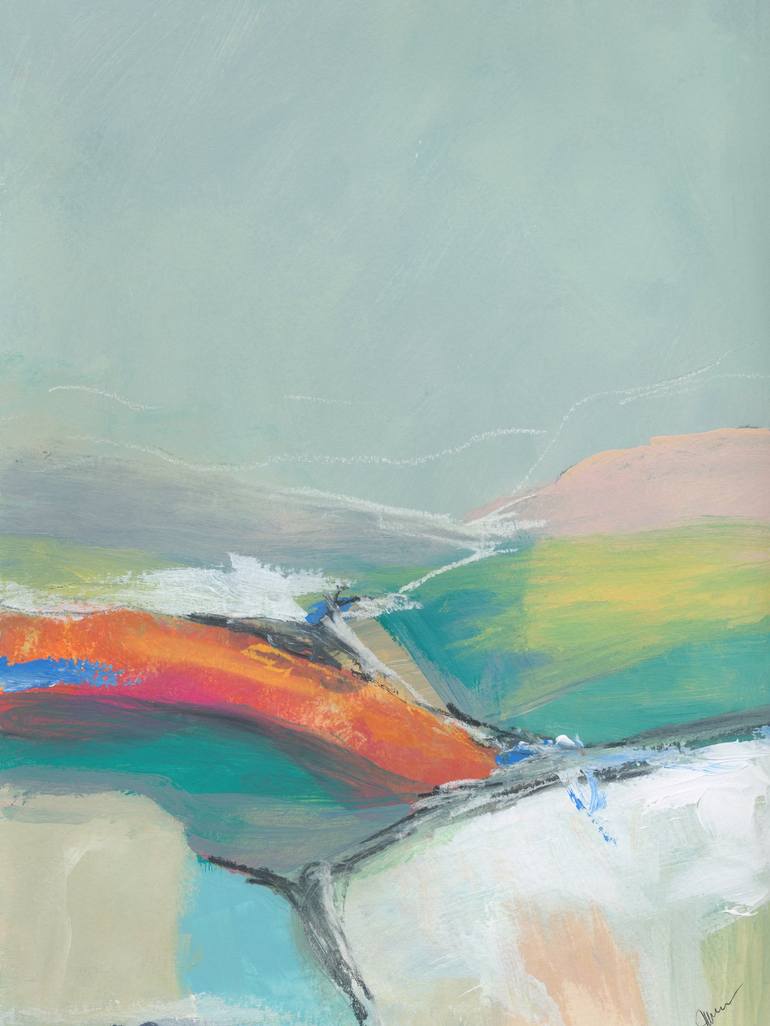 Title: June Hills 1 This is an acrylic painting on paper - 9x12 inches and professionally custom framed to 12x16. The frame will be in a light wood. This is a soft rendering of hills in late spring showing the colors of the awakening meadows. I used graphite to line everything and then painted and a...