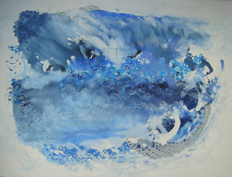 The oceans rolling and roaring close by and near the shire; many shades and tones of blue involved in this panorama of color and action imagined as viewed from just under the surface.