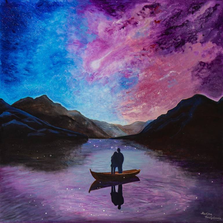 A cute romantic painting with a couple brings comfort and warmth to the room. In it, each person sees someone whom he knows, some can see his family, someone his parents, they may remind cute couple living in the neighborhood, someone can see family of their siblings. The picture can serve as an exc...