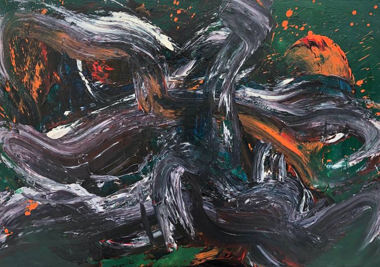 This painting emerges from an intuitive process driven by gesture, movement, and inner tension. My artistic language is rooted in the dialogue between classical discipline and the expressive freedom of Asian painting traditions. I allow the work to evolve organically, using not only brushes but also...