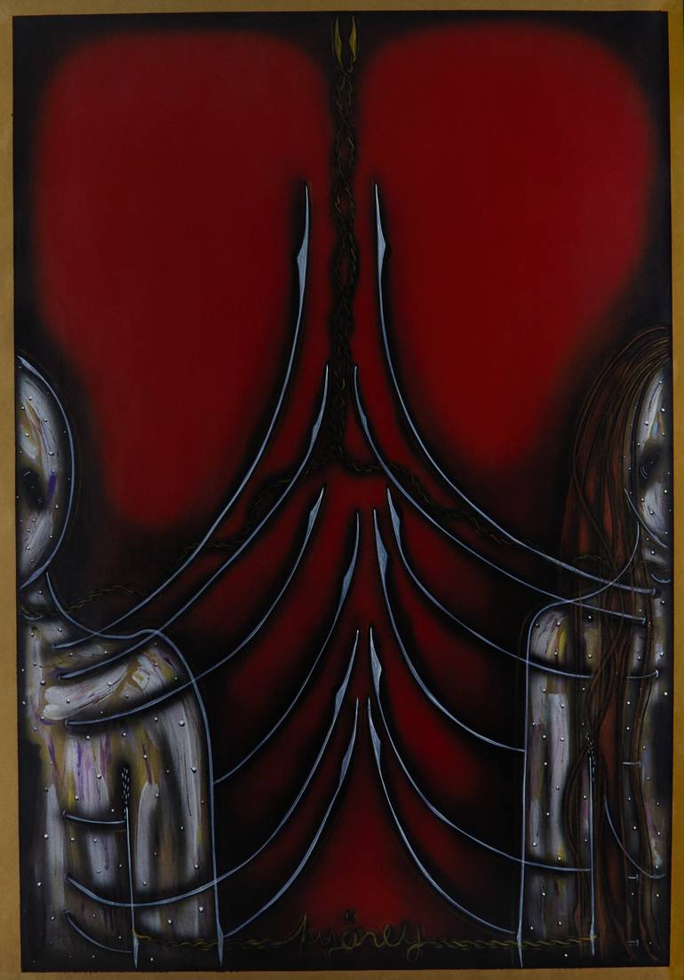General information about my direction studies: I decided to go outside the traditional pattern concept from the second year of university and turned to distort the truth in my studies with the guidance of Prof. Dr. Fahri Sumer to move forward on a more original path. Over the years, in addition to academic education, I decided that it was necessary to be interested in philosophy, poetry, sociology, literature, etc. in art and started to examine the works given in this direction. By adopting an expressionist perspective in my paintings, I try to transform what I see not as it is, but in my own intellectual world and transfer it to canvases following my philosophy of life. From this point of view, my work naturally differed over time. The inspiration for my work comes from a wide range of fields. I take advantage of the people, events, and feelings I encounter in daily life as well as the cult works that are transferred from the past to the present. Besides, I work on the unique subjects that my imagination offers me, without breaking away from reality. When I set out with the idea that all living and inanimate beings in the life weave, although they seem to be uninterred, are actually intertwined at any moment; I think that all beings in nature affect each other, whether they are aware of it or not, spiritually or physically. Everything that exists in the world consists of moments and lines that intertwine in my mind. It wouldn't be an exaggeration to say that all the memories and information in my mind turned into my works with the deformation of all the beings I encountered throughout my life. In my work, I changed my perspective as soon as I realized that we could actually perceive a lot of things when I thought we were focusing on something in space. For me, it does not matter if the figures and objects are in the front, back, or anywhere. Therefore, the lines began to take part in my studies, away from the anxiety of the beginning or end, the place in the picture, the direction. Just as our lifelines intersect without calculating strangely, in my work, an existing line can intersect with a line farther away or vice versa. I don't worry about beauty and ugliness in my figures, but naturally, the reflections of truth in my perception go into my work. I don't want to convey subjects through the sense of male or female but the universal sense of human beings.