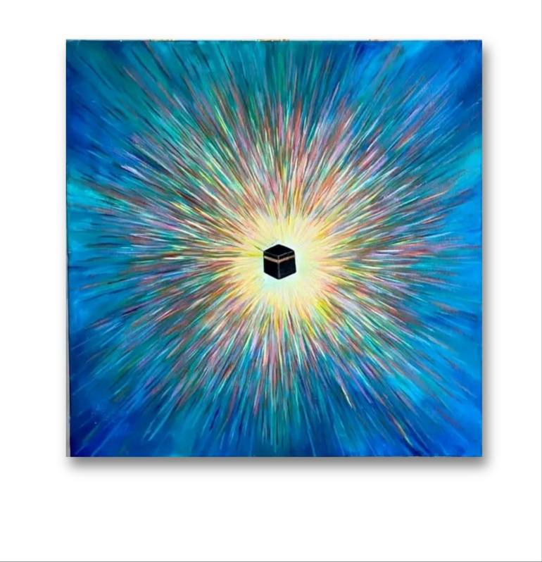 Hello to everyone. The painting depicts the Kaaba, the holiest site in Islam, surrounded by a radiant burst of light. The Kaaba is a cube-shaped building located in the center of the Grand Mosque in Mecca, Saudi Arabia. It is considered the House of God and is the focal point of the Hajj pilgrimage,...