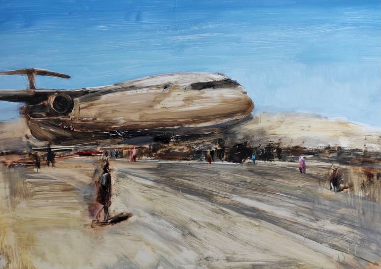 The painting "Kabul" is my reflection on the events in Afghanistan in the summer of 2021. XXI century. People chaotically running at the airport, like silhouettes no longer belonging to themselves, but only subordinate to the will of chance. The desperate are trying to fly away on the wings of an ...