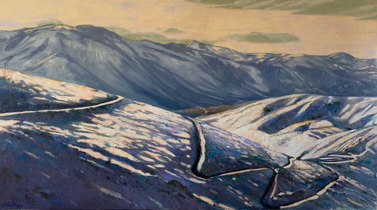 “Kalbajar” by Khanlar Asadullayev, oil on cancas, 360*200 sm. Breathtaking view of Kalbajar mountains from the view of Khanlar Asadullayev. This artwork is sold, it is already placed in newly launched “Crescent Mall” in Baku. But artist open for commissions.