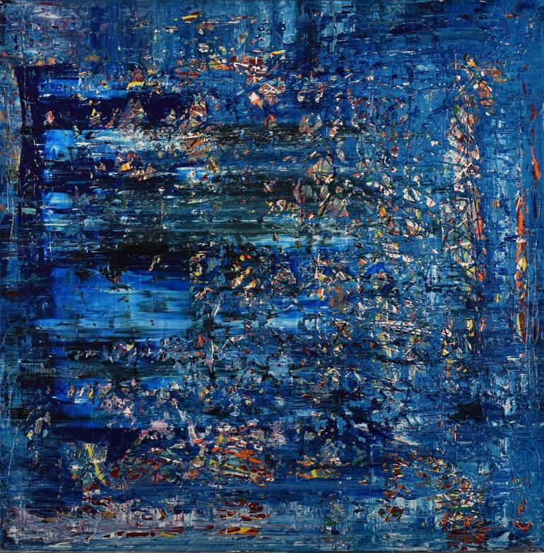 Kemal Yazici, a Turkish-German abstract artist inspired by Gerhard Richter, depicts the myriad of colors seen through a “kaleidoscope” in this 100x100 cm acrylic on canvas contemporary artwork. This contemporary painting features a color palette of blue, white, black, orange, yellow, red and green....