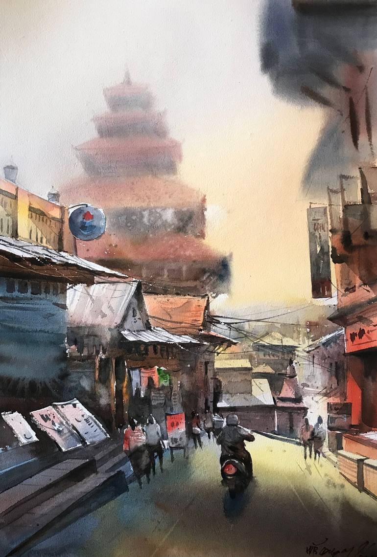 NB Gurung is an artist based in Kathmandu, Nepal . His paintings depict infinite shades of color that nature holds. The most exciting factor in his watercolor art is the immediacy of the medium and the way the color responds on paper to his personal emotions. He has held 5 times solo shows in Nepal and abroad.Similarly he has participated in numerous group art exhibition and conducted many art workshops physical and online, through out the world . To his continuous 25 yrs span of time in art field he has received several national and international awards among which Best Watercolor Award,India,second prize in East-West Watercolor Society,USA,regional Talent Award from Government of Nepal,Hemganga Youth Talent Award,Province Award from Nepal Academy of Fine Arts and many more . He has visited Czech Republic,Austria ,Switzerland,Slovenia,South Korea,Indonesia,Thailand,Bangladesh,China and India so far .Currently, he is the president of the International Watercolor Society of Nepal