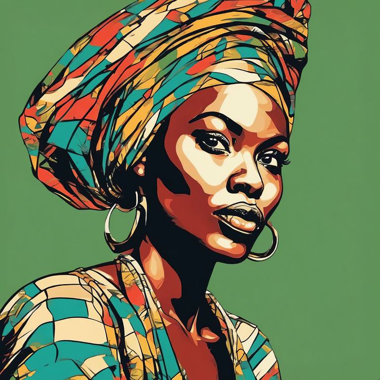 The digital pop art portrait of the beautiful African lady is a vibrant and captivating representation that seamlessly blends traditional portraiture with modern artistic techniques. The bold use of colors creates a striking visual impact, with hues that range from deep, rich tones to bright, electr...