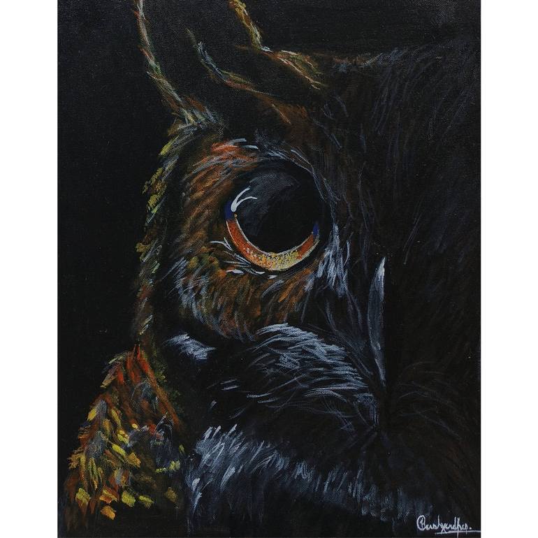 Keeper of Secrets - Guardian of the unknown, holding the mysteries of the night in a silent gaze. This painting of an owl, with its piercing eye dominating the scene, immediately evokes a sense of deep wisdom, mystery, and quiet observation. The intense focus of the owl’s gaze gives off a feeling t...