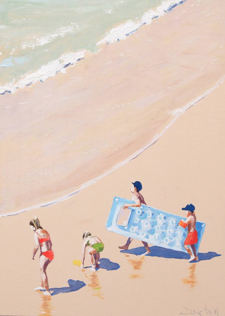 Oil painting on wood canvas. Front/back signed and certificate of authenticity. Gloss varnish. 46x33x4 cm. 18x13x1,6 inches. This statement work, like all of Carlos Martín's unique and original beaches, contains all the magic, light and color that only beaches are capable of providing. Its vibran...