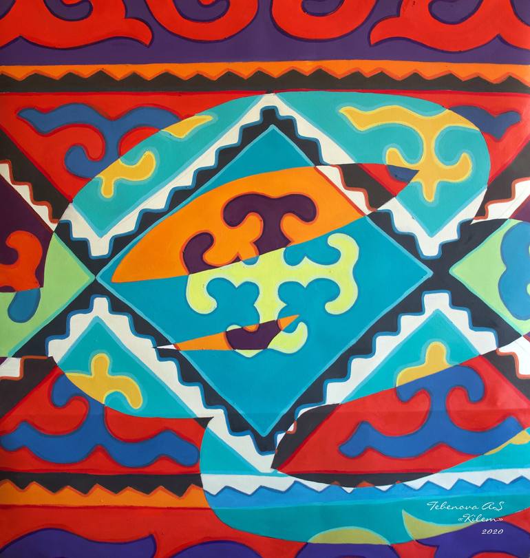Alua Tebenova is a Kazakhstani artist based in Romania whose paintings have been exhibited in both nations. Through her works, she endeavors to combine certain philosophical aspects with the symbolism attributed to the ethnogenesis of the nomadic people of Central Asia. Tebenova's artistic expression is diverse, she alternates between classical realism and abstract expressionism, fusing the traditional with the modern.