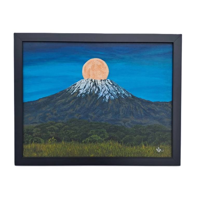 Inspired by the serene grandeur of Africa's tallest peak, "Majestic Kilimanjaro" captures the mountain’s timeless beauty under a tranquil moonlit sky. Using vibrant acrylics, I aimed to evoke a soothing, contemplative mood, blending realistic and impressionistic styles. The moon’s soft glow enhances...