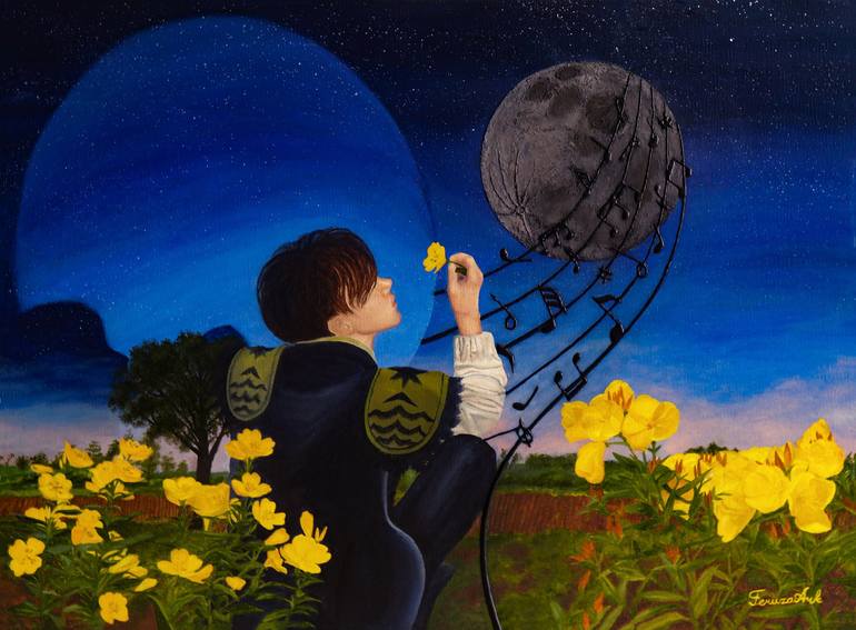 The idea of this painting came when I looked at the tarot layout for that month which was difficult for me, but very significant. The card fell out was King of Cups. King of Cups is an empathic, sensitive, calm, creative person. It also said that he has water sign. He would help, bring peace, inspir...